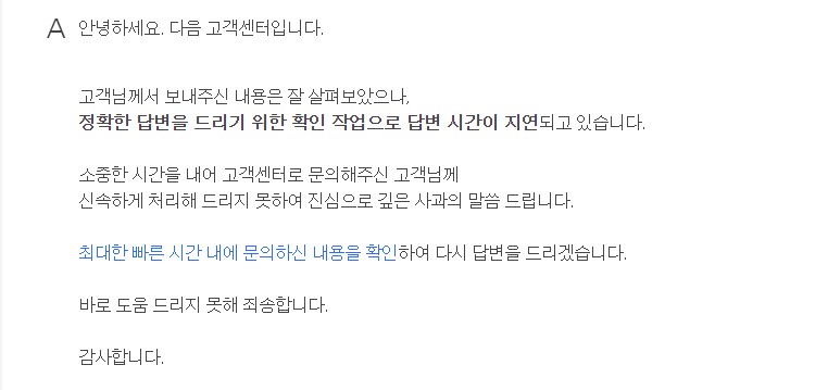 저는 카카오 고객센터와 다음 고객센터 두 곳에 문의를 넣었습니다. 어째서 블로그가 저품이 되었는지 모르겠으니 검토 후 복구해달라는 내용으로 말이죠.